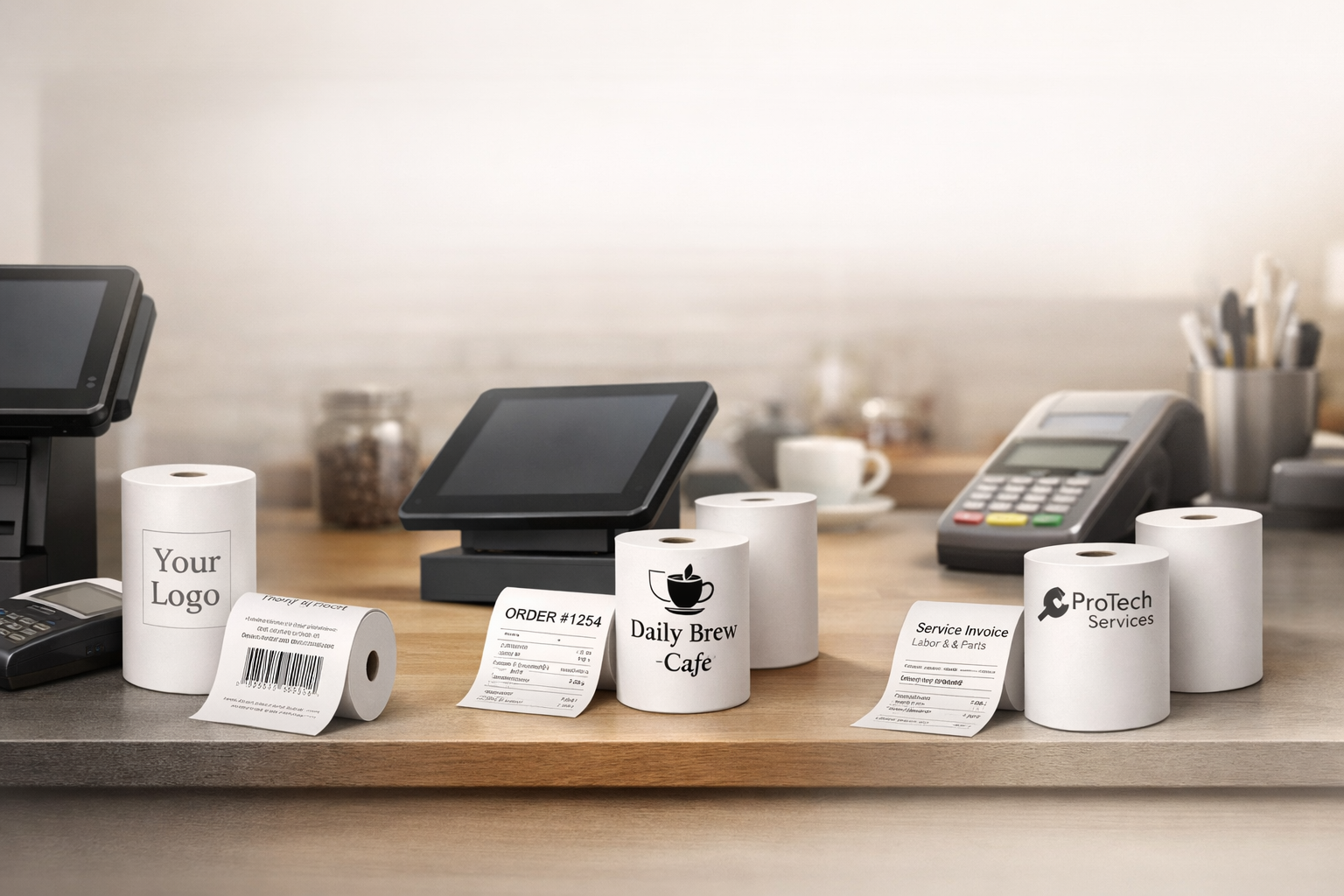 Stand out at the point of sale with custom-branded thermal paper rolls. Media Cash Register Inc. offers professional flexo printing services to help you turn every receipt into a marketing opportunity.